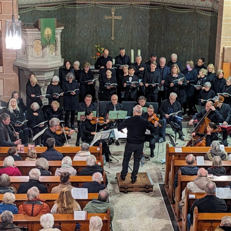Mit einer eindrucksvollen Aufführung von Karl Jenkins’ „Stabat Mater“ hat der Projektchor des Liederkranzes Bammental gemeinsam mit den Singing Friends, einem Ensemble der Kurpfalzphilharmonie und vier Gesangssolisten das Publikum in der voll besetzten evangelischen Kirche Bammental tief bewegt. Unter der Gesamtleitung von Wolfgang Sachs, der über 40 Sängerinnen und Sänger in intensiver Probenarbeit auf das anspruchsvolle Werk vorbereitet hatte, entstand ein musikalisches Ereignis von seltener Geschlossenheit und Ausdruckskraft.