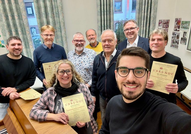 Unter den fachlich versierten Augen und Ohren von Verbandschorleiter Armin Fink zeigte sich alle gut vorbereitet, teilweise kamen ihnen dabei auch Vorkenntnisse im Instrumentalspiel zugute. Kleine Tipps vom Profi waren sicherlich auch hilfreich und wertvoll für das zukünftige Auftreten vor und mit den Choristen. Prüfungsfragen wurden selbstbewusst und präzise beantwortet.